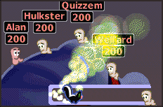 After a bit, or when forced to do it early with an input, it will emit stinking fumes, "infecting" nearby Worms with poison, causing them to lose five points per round. If you let the stinking fumes infect the same Worm again, instead of losing five health points each turn they will lose ten. Like other sources of poison, it will leave a dying worm with only one health point, and can be cured with a Health Crate. It will then explode after a while or another fire input, causing direct damage to nearby Worms.