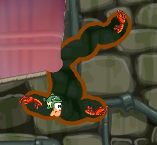 When the player uses it, three termites will be placed and they will start digging one tunnel each in a random direction. As soon as the termite is done creating the tunnel it will explode with a small explosion inflicting no damage. The player can use these tunnels to hide in. Sometimes the new tunnels will be hard to navigate through due to the termites creating random paths.